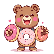 Wear your sweet tooth and sense of fun with this funny bear bot t-shirt. The delighted bear juggling donuts is a treat for the eyes.